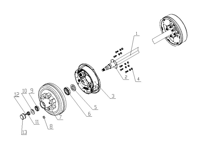 12 inch electric/hydraulic drum braked axle 2500-3500KG